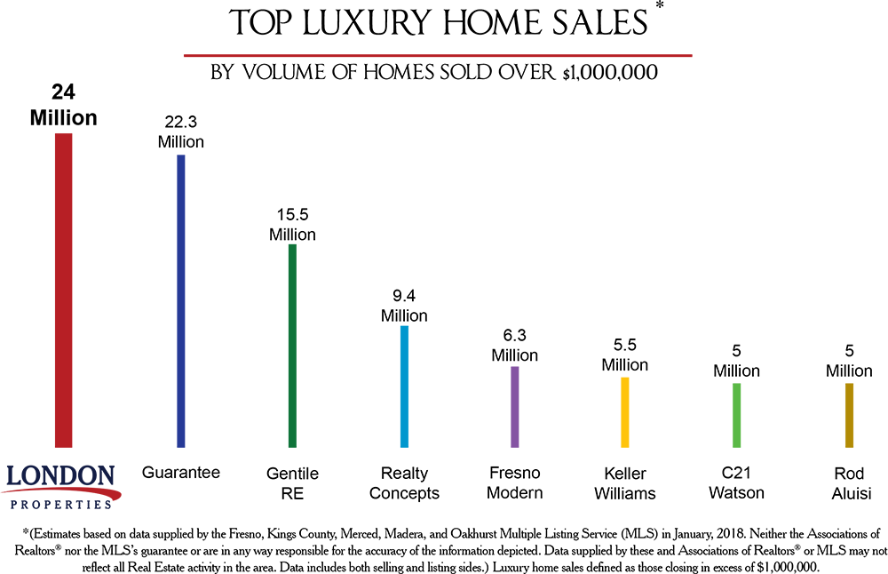Year after year, London Properties participates in more luxury home sales than any other broker in the Central Valley. We understand the discretion and confidentiality of our luxury clientele and how to meet their expectations. If you are relocating to the Central Valley contact one of associates who has recently participated in a Luxury Home sale. We can provide you with the market data, local information and personal tour to make your relocation as stress-free as possible.